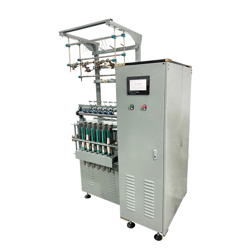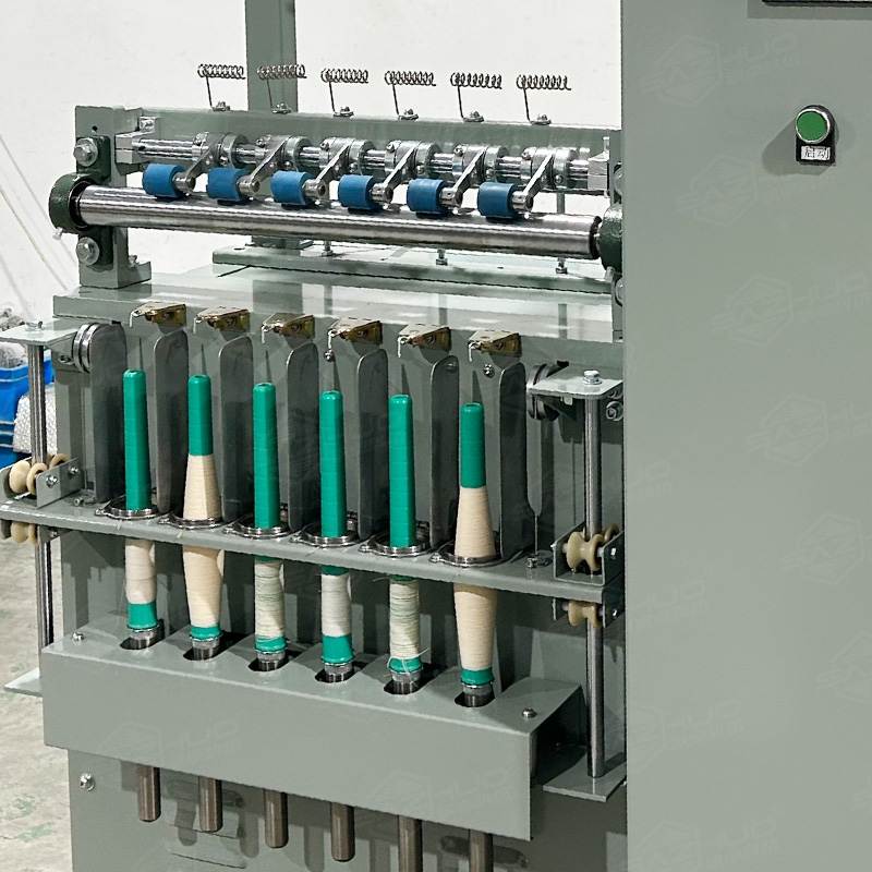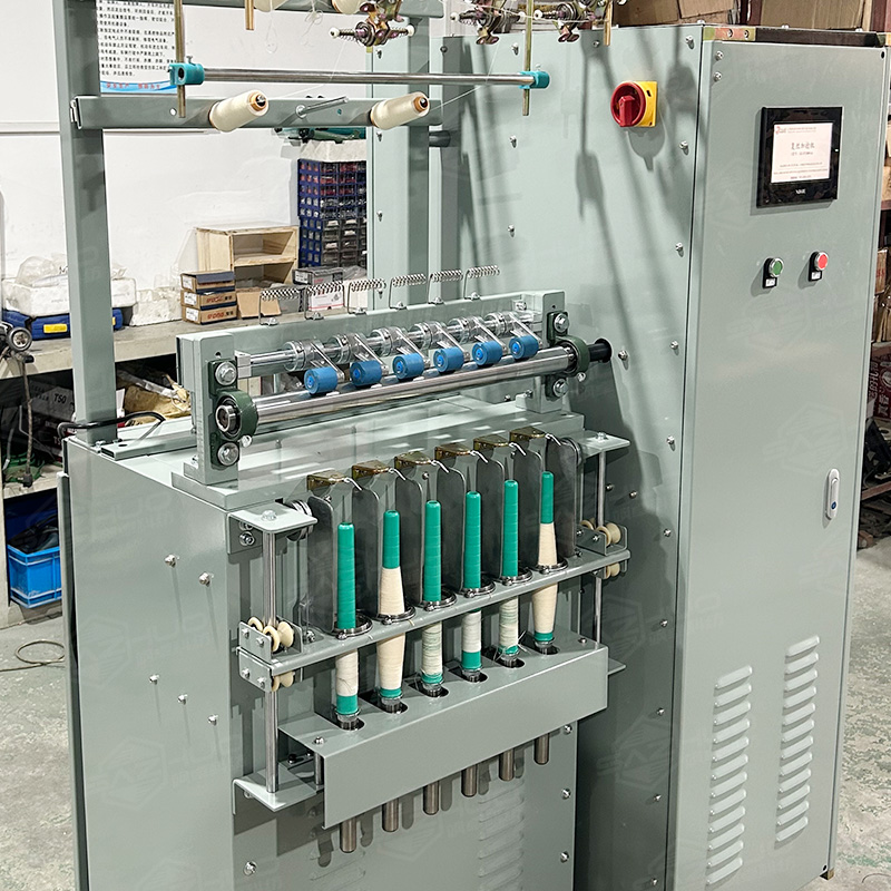 複絲加撚機的工作原理主要是將多股紗線或纖維束進行加撚,以增加其強度和耐用(yòng)性‌。具體來說,複絲加(jiā)撚機由喂(wèi)入機構、加撚機(jī)構、卷取機構等部分組成‌。在工(gōng)作過程中,喂入機構首先將纖維束喂入加撚室,由羅拉(lā)牽伸機構進行牽伸,使纖維(wéi)束初步拉細。接著,加(jiā)撚機構將纖維束加撚(niǎn)成紗,這(zhè)一機構一般由兩個或三個羅拉組成,通過羅拉的對轉和(hé)纖維束的扭(niǔ)轉,使纖維束獲得(dé)一定(dìng)的撚度。最後(hòu),卷取機構將加撚後的紗線卷取成筒(tǒng)紗‌。