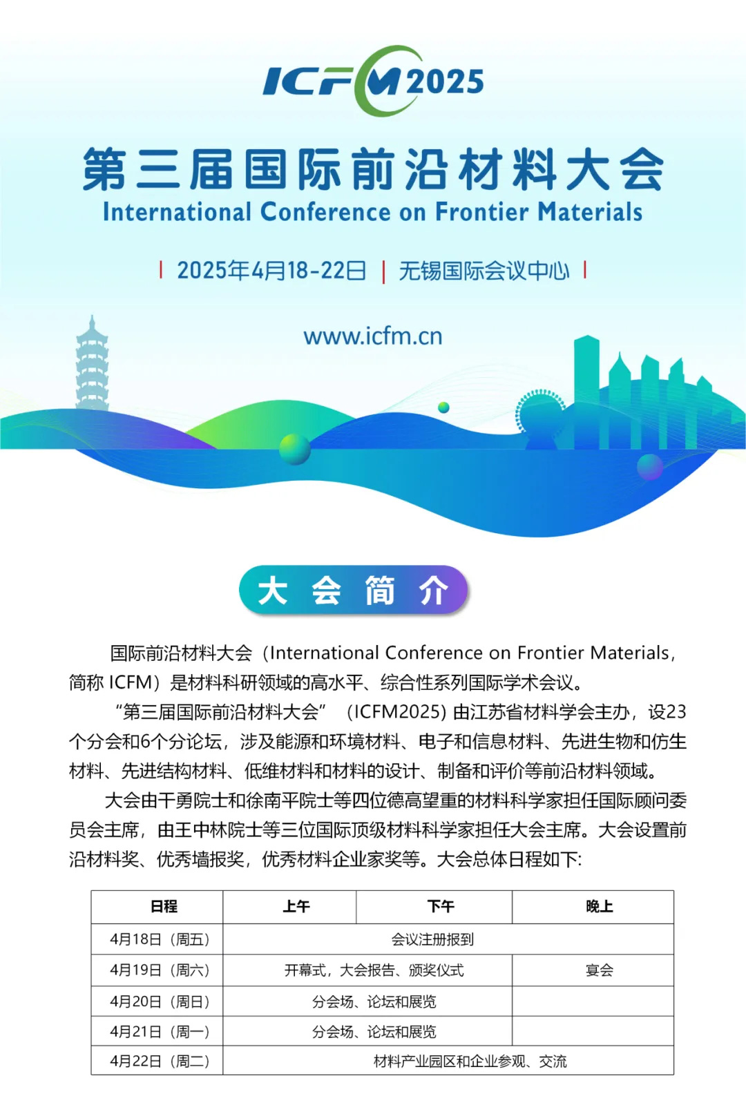“2025國際前沿材料大會”將於2025年4月18-22日在無錫國際會議中心舉辦,大會致(zhì)力(lì)於推動先進、前沿材料領域的國際學術交流。先進纖維材料分會分(fèn)屬於低維材料領域。分會主題包括: